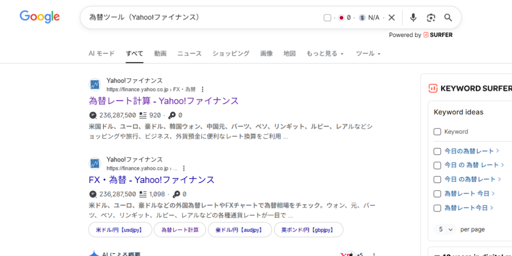 為替ツール(Yahoo!ファイナンス)で検索をします。